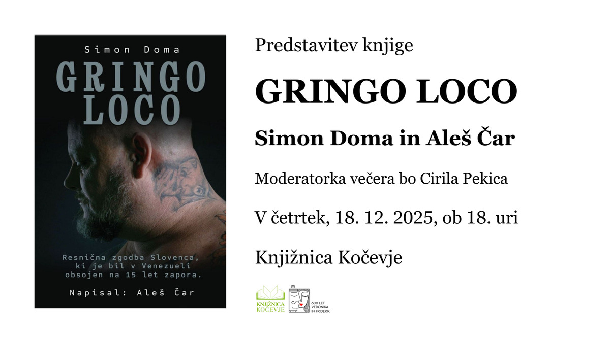 Knjižnica Kočevje vabi na predstavitev knjige Gringo Loco, resnične zgodbe Slovenca Simona Dome, ki jo je zapisal Aleš Čar.
