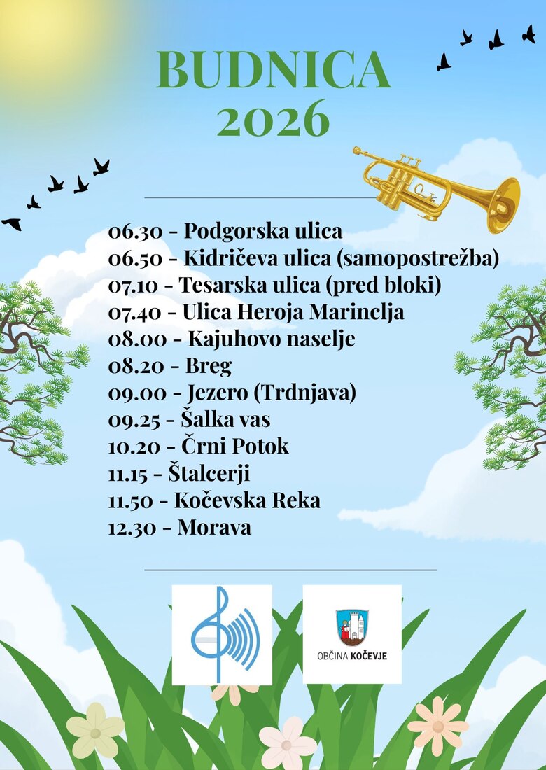 Na 1. maj bo tudi Kočevska godba zaigrala prvomajsko budnico. V priložnem plakatu točne ure in lokacije, kjer jih boste lahko slišali.