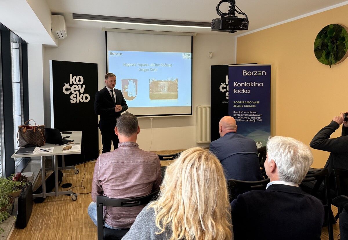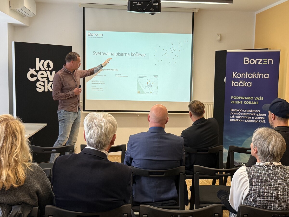 V prostorih na naslovu Trg zbora odposlancev 10 v Kočevju od začetka decembra deluje svetovalna pisarna Borzenove kontaktne točke za spodbujanje rabe obnovljivih virov energije. S predstavitvenim dogodkom, ki je 11. decembra 2025 potekal v sejni sobi Kulturnega centra Kočevje, je Borzen svetovalno pisarno približali zainteresiranim občanom in podjetjem, ki delujejo v regiji. Po uvodnem nagovoru župana Občine Kočevje Gregorja Koširja, je predstavnik Borzena Iztok Gornjak predstavil delovanje kontaktne točke OVE in Borzenovih razpisov. Sledil je nagovor direktorice LEAD Irene Lisac, svetovalec kontaktne točke OVE Roman Perčič pa je predstavil potek svetovanja za pridobitev subvencije ter primere projektov OVE iz prakse.