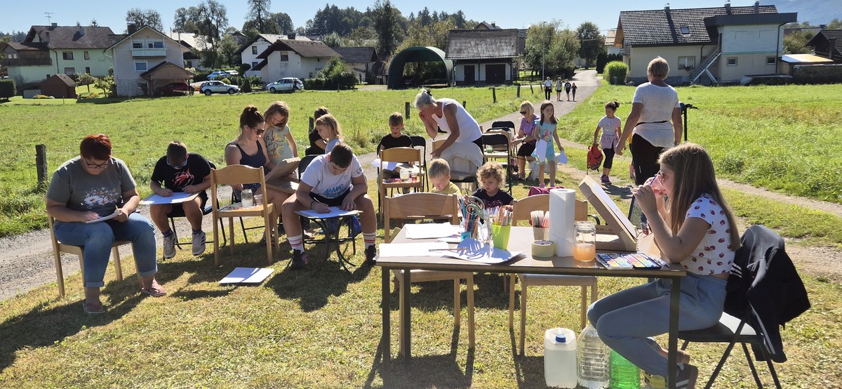 V soboto, 20. 9. 2025, se je v Koblarjih odvijal prav poseben dan. Umetniško-športni dan, če smo natančni. Vreme nam je postreglo s krasnim soncem in poletnimi temperaturami, tako da je bil dan še lepše obarvan s toplimi jesenskimi barvami. Vaščani Koblarjev so pripravili nabor zanimivih, z umetnostjo obarvanih aktivnosti, ki so se v dopoldanskem času odvijale na treh različnih lokacijah v vasi. Na delavnicah so sodelovali vaščani vseh generacij, od najmlajših do najstarejših, saj je bil cilj dneva medgeneracijsko druženje in sodelovanje. Pri vaškemu domu so otroci izdelovali umetnije iz naravnih materialov, kot so listje, plodovi, vejice in kamni. Na "vaški luži" - mlaki sredi vasi, kot jo imenujemo, so otroci upodabljali živali, ki živijo v in ob luži. Pri Kapelici Sv. Štefana, na koncu vasi, pa so udeleženci poskusili naslikati vaško kapelico. Po končanih delavnicah smo v gozdičku na igrišču pripravili razstavo vseh nastalih izdelkov, to razstavo so si lahko ogledali vsi, tudi tisti, ki v dopoldanskem času niso mogli sodelovati na delavnicah.