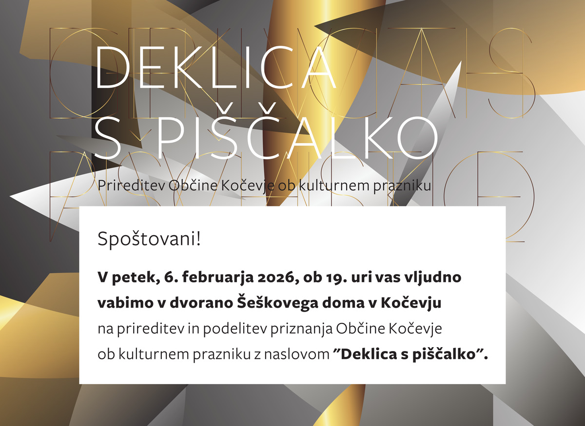 V petek, 6. februarja 2026, ob 19. uri vas vljudno vabimo v dvorano Šeškovega doma v Kočevju na prireditev in podelitev priznanja Občine Kočevje ob kulturnem prazniku z naslovom "Deklica s piščalko".