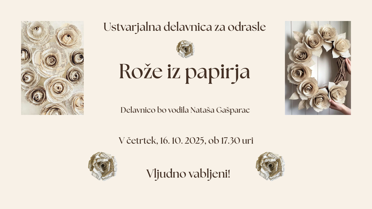 V Knjižnici Kočevje začenjamo z novo sezono delavnic za odrasle. Na prvi bomo izdelali papirnate rože iz katerih bodo nastali venčki.