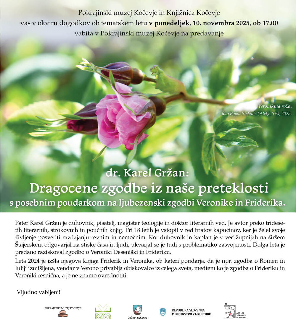 Pokrajinski muzej Kočevje in Knjižnica Kočevje vas v okviru dogodkov ob tematskem letu v ponedeljek, 10. novembra 2025, ob 17. uri vabita v Pokrajinski muzej Kočevje na predavanje
