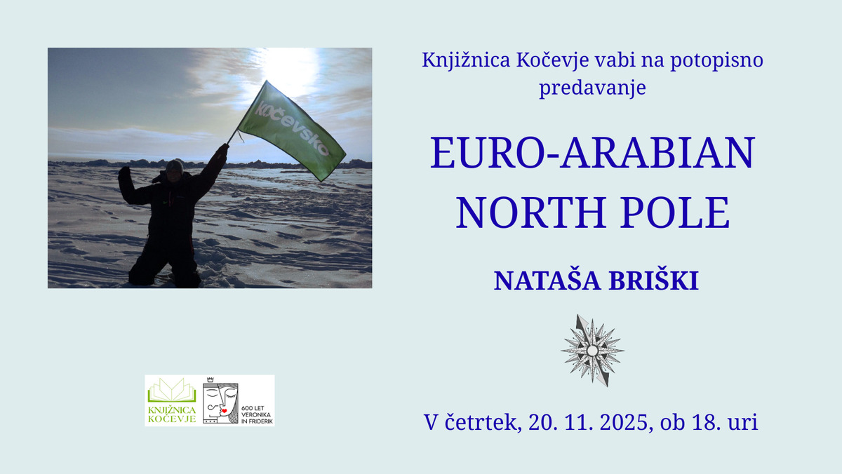 Knjižnica Kočevje vabi na potopisno predavanje Nataše Briški z naslovom EURO-ARABIAN NORTH POLE, ki bo v četrtek, 20. novembra 2025, ob 18. uri.