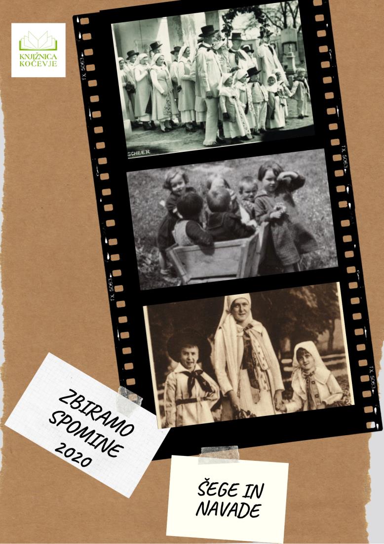 Kot vsako leto, tudi v letošnjem novembru poteka akcija ZBIRAMO SPOMINE, ki je letos posvečena šegam in navadam našega kraja. Če imate doma (morda pa pri starših, starih starših itd.) fotografije, dokumente, predmete ali spomine v povezavi s praznovanjem šeg in navad v Kočevju in okolici (pustovanje, poroke, rojstvo, krst, jurjevanje, martinovanje, setev, koline, ličkanje koruze, mlatev ...), bomo zelo veseli, če boste gradivo delili z nami in tako prispevali k bogatenju naše domoznanske zbirke.