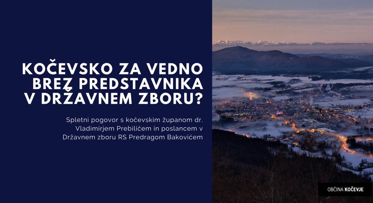 Pogovor s kočevskim županom dr. Vladimirjem Prebiličem in poslancem v Državnem zboru RS Predragom Bakovićem o predlaganih spremembah Zakona o volitvah v Državni zbor, ki predvidevajo ukinitev volilnih okrajev kot enot za izvolitev poslancev v DZ RS.