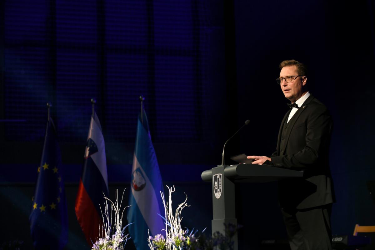 V četrtek smo v športni dvorani Kočevje izvedli svečanost ob prihajajočem državnem prazniku dnevu samostojnosti in enotnosti, ki ga praznujemo 26. decembra. Ravno na 23. december je bil pred 31 leti v Sloveniji izpeljan Plebiscit, na katerem se je 95 % udeleženih volivcev odločilo, da želimo imeti samostojno in neodvisno državo. Domači nastopajoči so, vsak na svoj način pokazali kaj jim pomeni ta praznik in kako ljubijo svojo domovino. Župan občine Kočevje dr. Vladimir Prebilič je kot osrednji govornik december, božič in novoletne praznike označil kot čas pričakovanja, hrepenenja po novem, čas za nove začetke in pomen tega časa za bivanje z našimi dragimi. Čas v katerem živimo je označil kot čas izjemnih preizkušenj, ki se dotaknejo vsakega izmed nas. Poudaril je nujnost medsebojnega razumevanja in strpnosti, da bi skozi njiju na najbolj iskren način pokazali svojo človeško plat. Župan je svoj govor zaključil s stavkom: »Prepričan sem v naše sposobnosti, neskončno dobroto in pogum, ki se je morda malce skril v zadnjem času ali postal manj izrazit. Sedaj je čas za solidarnost in odgovornost in vse težave in izzivi bodo za nas rešljivi hitro in učinkovito. Dajmo, naredimo Slovenijo takšno, kot si jo želimo in si jo tudi zaslužimo!«