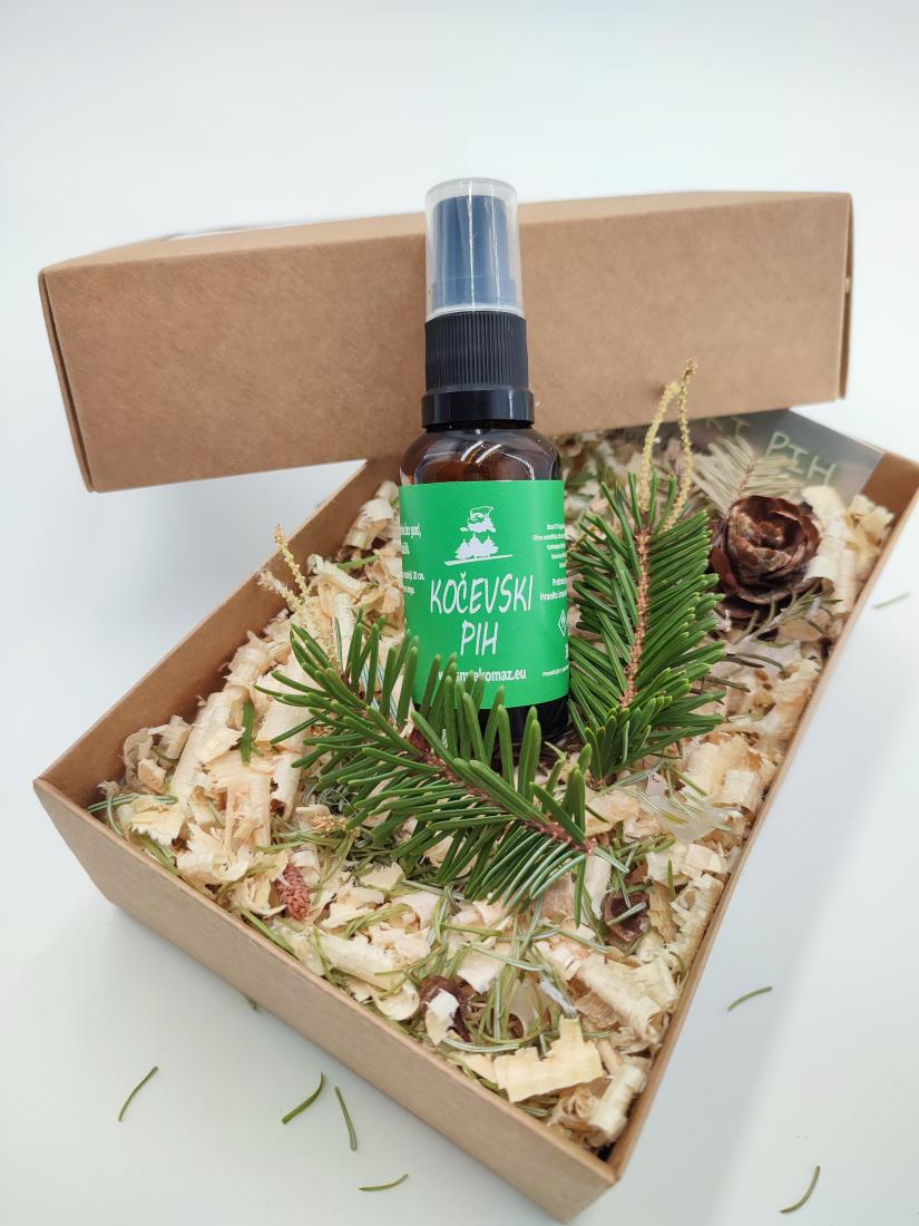 Kočevski pih je dišava, izdelana iz naravnih eteričnih olj, ki pričarajo vonj kočevskih gozdov. Namenjena je vsem, ki so aktivni v naravi, saj naj bi po navedbah avtorice odganjala komarje in klope. Kočevski pih, ki je prijazen tako do ljudi kot živali, je nastal na podlagi avtoričinih lastnih potreb, raziskav, testiranj in povratnih uporabniških informacij. Komisijo je izdelek prepričal z dejstvom, da ima veliko uporabno vrednost, je iz naravnih in lokalnih sestavin ter prijetnega vonja. Komisija je pohvalila tudi ekološko noto embalaže izdelka, ki je povratna. Grafika izdelka je skladna s celostno podobo linije že obstoječih izdelkov. Pozitivna lastnost izdelka je tudi možnost različnih variacij, npr. v obliki mazila, roll-ona in različnih dimenzij. Izdelek je ovit v lično embalažo z gozdnim pridihom.