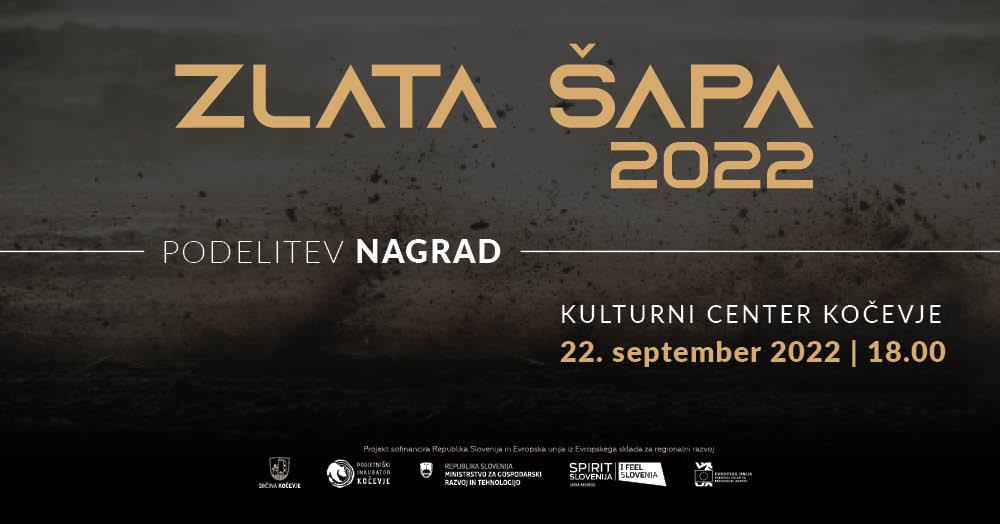Zaključna prireditev ZLATA ŠAPA bo tokrat v velikem slogu v četrtek, 22. septembra 2022 ob 18. uri v Kulturnem Centru Kočevje. Z vsakim finalistom bomo opravili sproščen pogovor pred publiko in si ogledali njihov novonastali promocijski video. Sledila bo svečana razglasitev zmagovalca v vsaki kategoriji, ki bo prejel naziv Najperspektivnejšega mladega podjetja in nagrado ZLATA ŠAPA 2022.