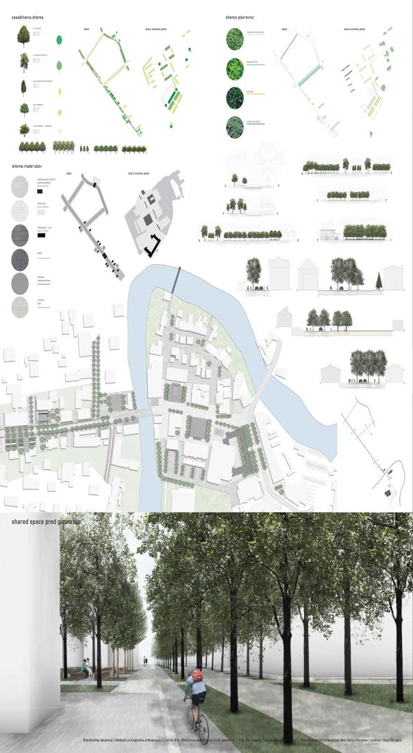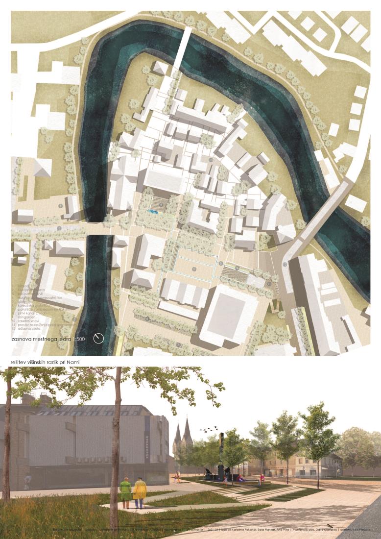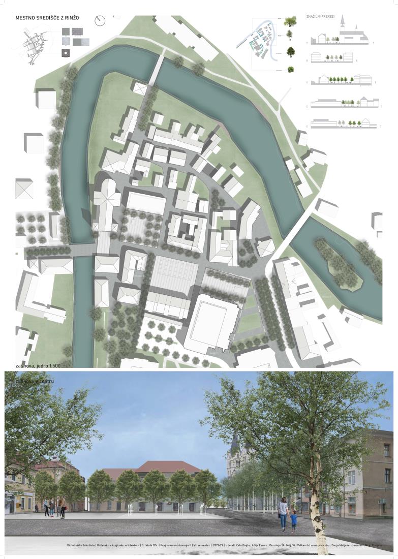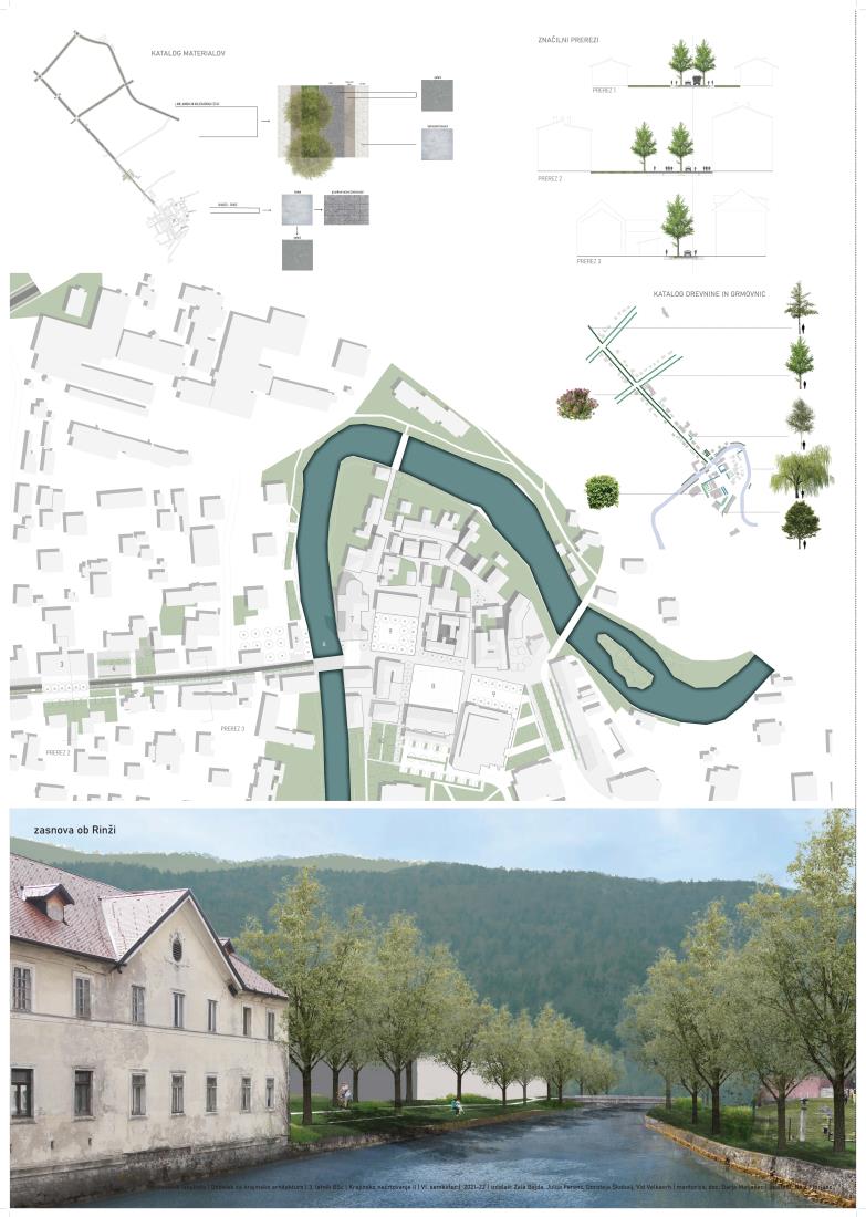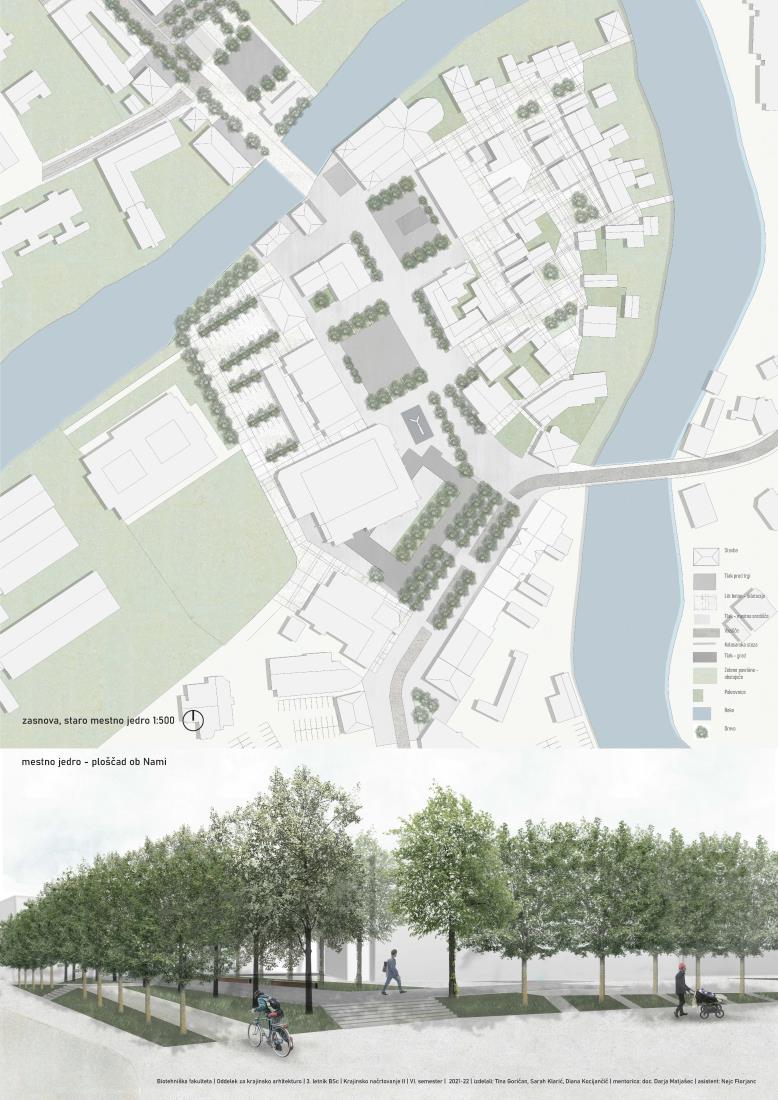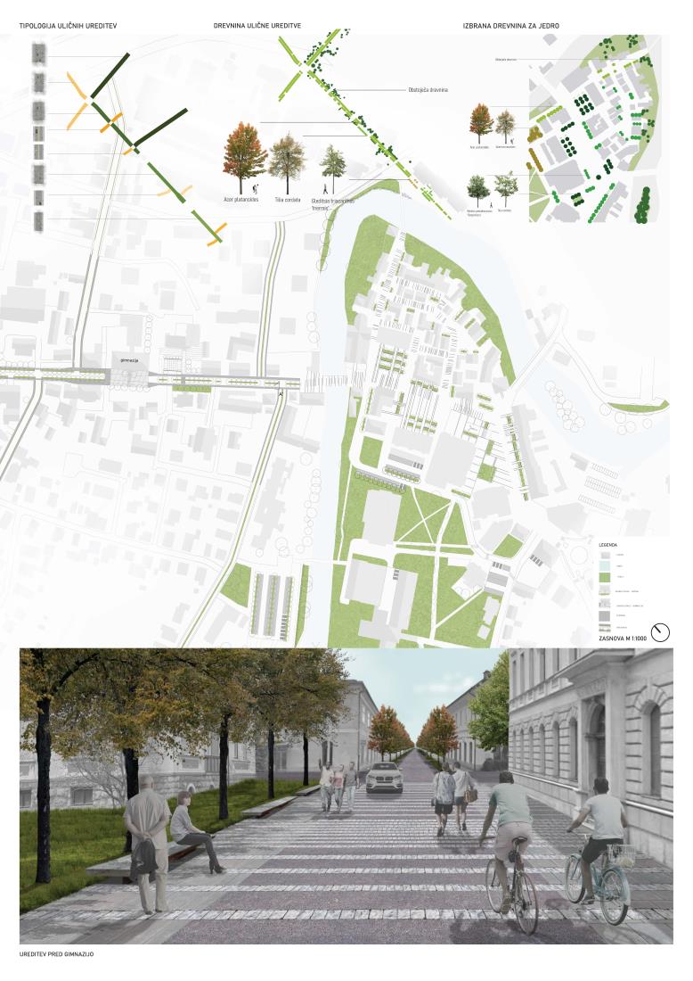 V sklopu naloge so študentke in študenti celovito obdelali prostor z idejo oblikovnega in programskega povezovanja mesta, vse od železniške postaje do mestnega jedra. V obzir so vzeli predhodno opravljene analize in programska izhodišča projekta Vsi v mesto ter na podlagi tega podali predloge sodobne ureditve javnega prostora z namenom boljšega prilagajanja podnebnim spremembam, ustvarjanja kakovostnega odprtega prostora za prebivalce in ustvarjanja javnih površin, ki odgovarjajo karakterju ter identiteti kraja oziroma prebivalcev. Predlagane ureditve so zato zaznamovane z veliko drevoredi in zasaditvami pretežno avtohtonih vrst, ki so primerne mestu. Predlagajo uporabo tlakovanj odpornih na klimo Kočevskega in dajejo poudarek pomembnim lokacijam v mestu – posamezni kotički so na Ljubljanski cesti predlagani pred Občino in Gimnazijo, in se nato razširijo v mestnem jedru na ploščadi, na Trgu sv. Jerneja in na spodnji ploščadi. Vsem predlogom pa je enotna ideja mesta z veliko zelenja, trajnimi materiali in s poudarkom na prisotnost ljudi v javnem prostoru.