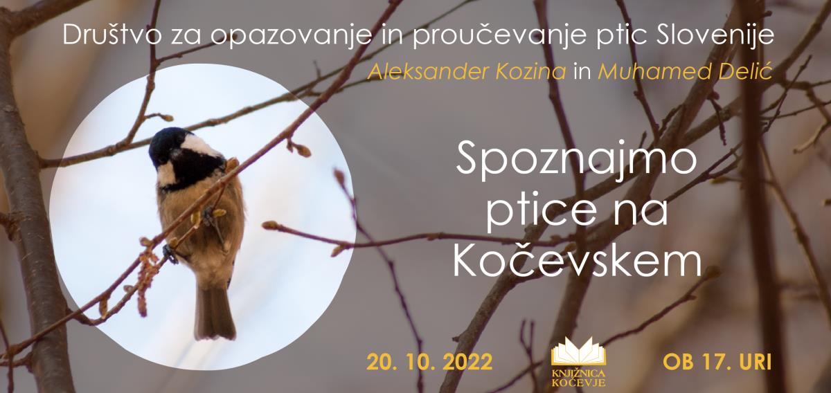 Knjižnica Kočevje in Društvo za opazovanje in proučevanje ptic Slovenije (DOPPS) vas v četrtek, 20. oktobra 2022, ob 17. uri vabita na predavanje »Spoznajmo ptice na Kočevskem«. Dogodek, ki bo potekal v čitalnici naše knjižnice, bosta vodila Aleksander Kozina in Muhamed Delić. Ob fotografijah bodo predstavljene številne zanimive vrste ptic, tako gnezdilke, kakor tudi tiste, ki zgolj preletijo Kočevsko ali pa se na kratko ustavijo na svoji selitveni poti.