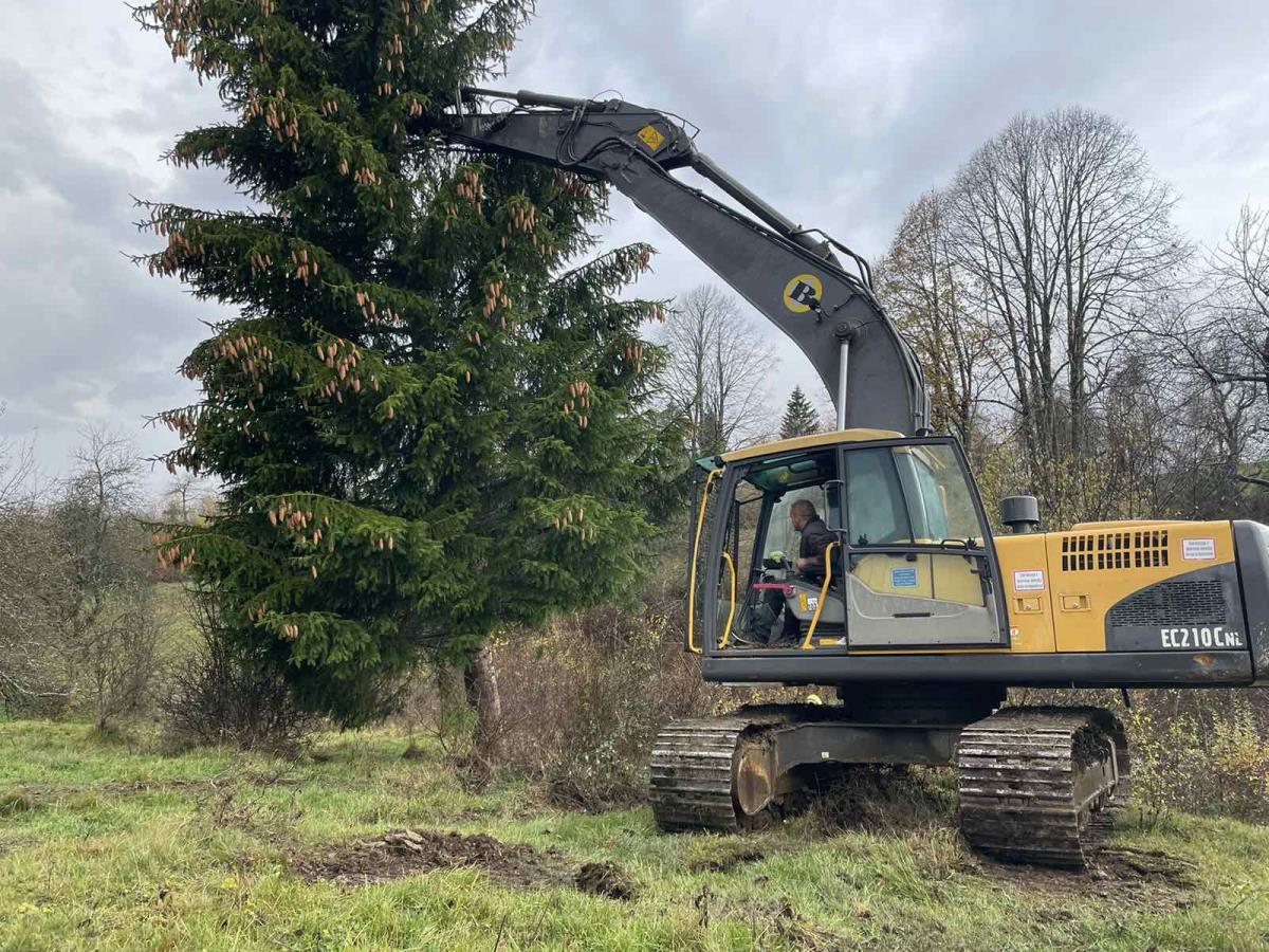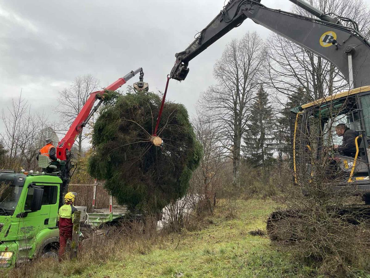 Novoletna smreka je bila tudi letos skrbno izbrana. Biti mora namreč ravno prav visoka (10 do 12 m), enakomerno poraščena z vejami in z ravno prav debelim deblom (okoli 35 cm). Hkrati pa je posebna pozornost potrebna tudi pri podiranju in prevozu, da drevo utrpi čim manj poškodb.