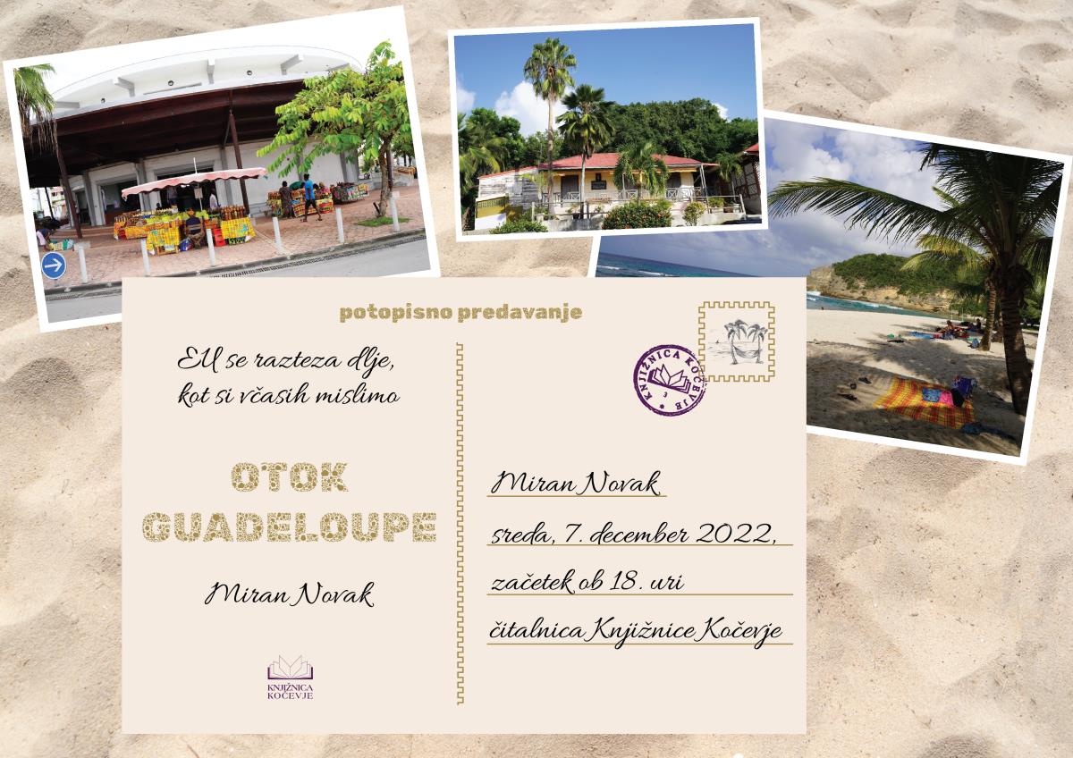 Knjižnica Kočevje vas lepo vabi na potopisno predavanje: "EU se razteza dlje, kot si včasih mislimo". Domačin Miran Novak bo v sredo, 7. decembra 2022, ob 18. uri z nami delil nekaj utrinkov z obiska otoka Guadeloupe. Otok, ki je francoski prekomorski departma, leži v Malih Antilih v karibskem arhipelagu.