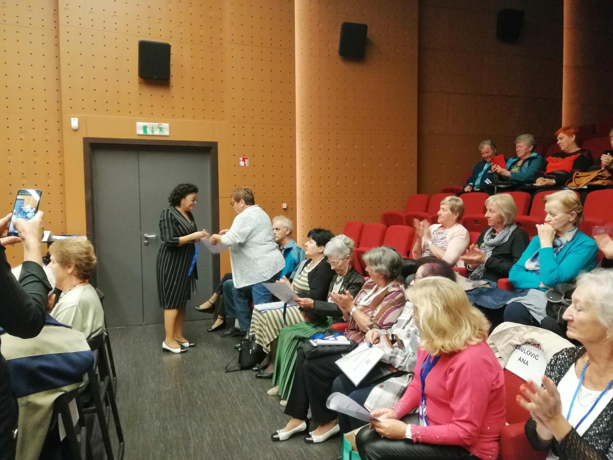 Po zaključku govora je sledilo prijetno presenečenje, saj je predsednica Društva invalidov, Vesna Markoš, direktorici OU izročila šopek rož ter posebno priznanje za dolgoletno delo in prizadevanje na področju dela z invalidi v občini Kočevje.